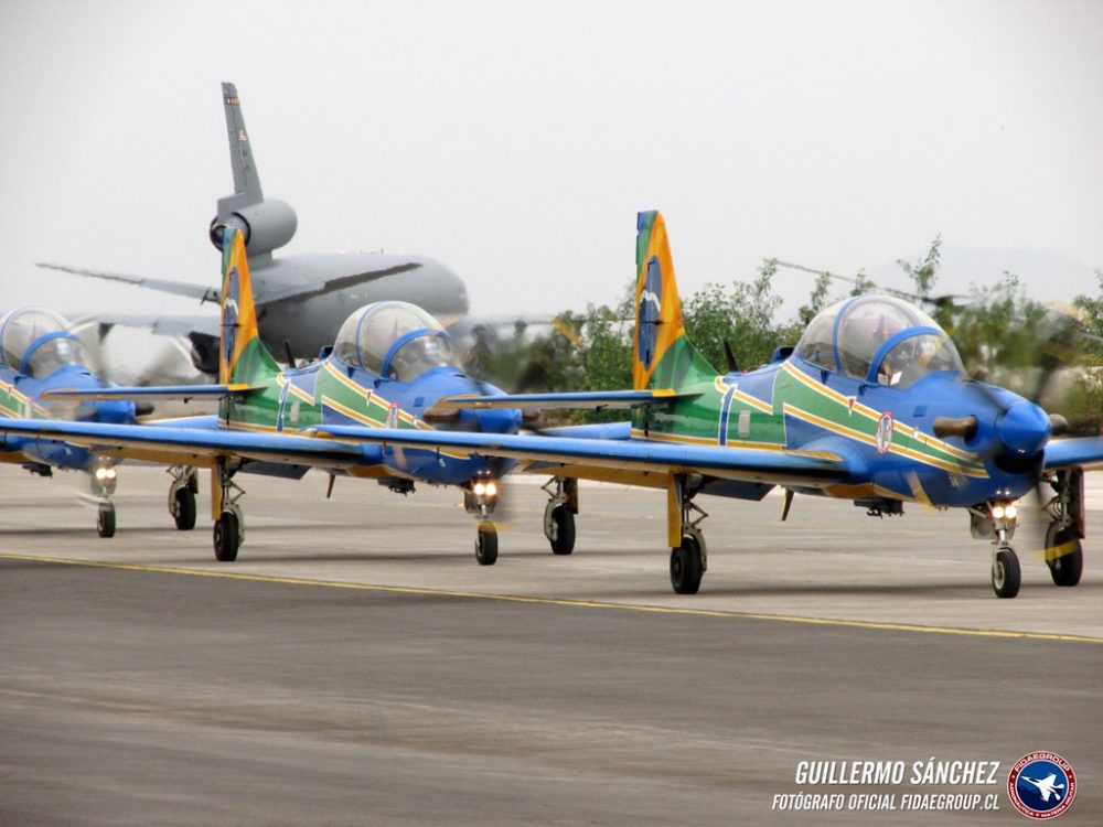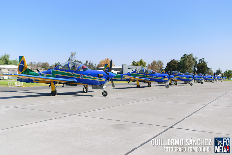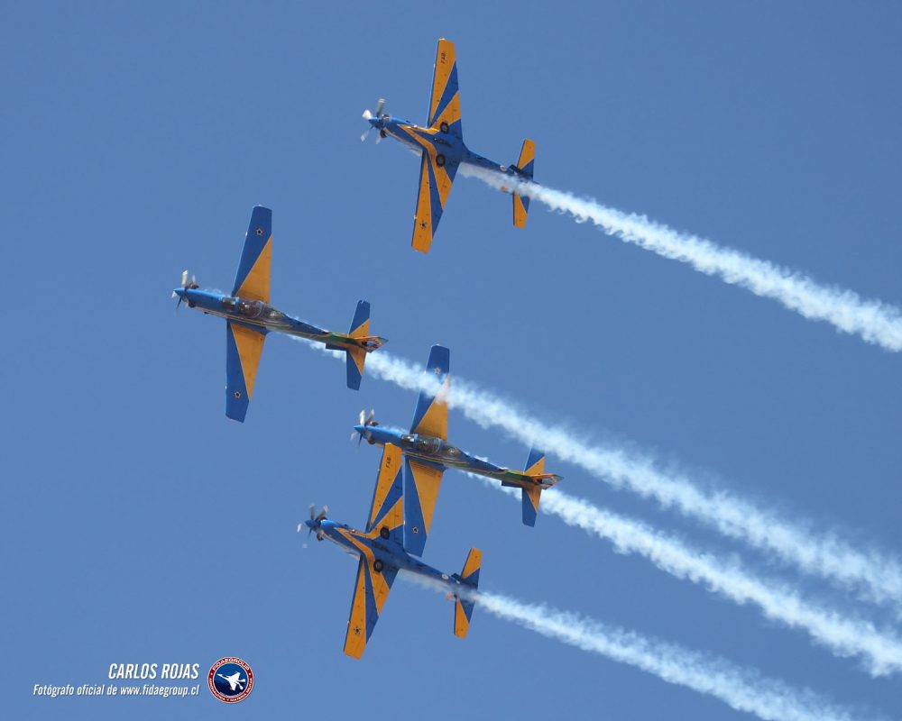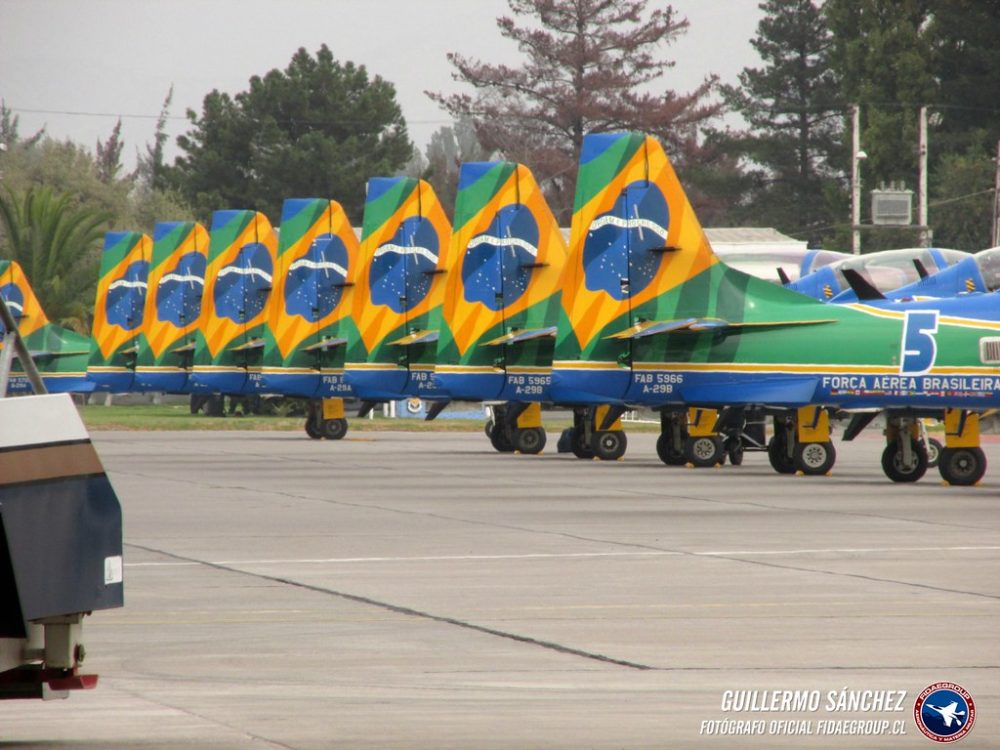 La escuadrilla que representa a la Fuerza Aérea Brasileña con más de 70 años de trayectoria, ha estado en FIDAE por 40 años, pasando desde los T-27 Tucano, hasta los A-29 Super tucano y una transición de 3 esquemas de colores.