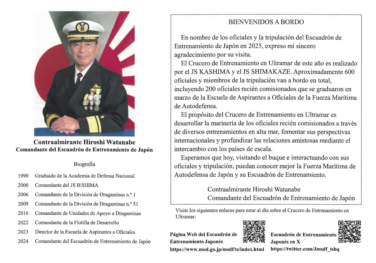 El próximo sábado 02 de agosto, a las 10:00 horas, recalará al Molo de Abrigo en Valparaíso, la Flotilla de Entrenamiento de la Fuerza Marítima de Autodefensa de Japón; la cual está compuesta por el Buque Escuela “Kashima” y el destructor “Shimakaze”.