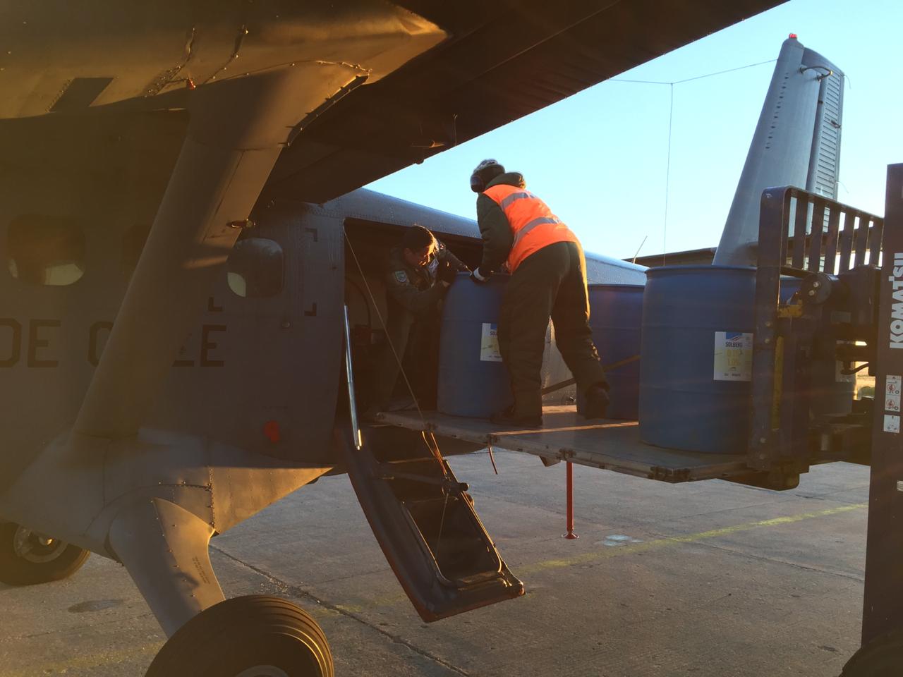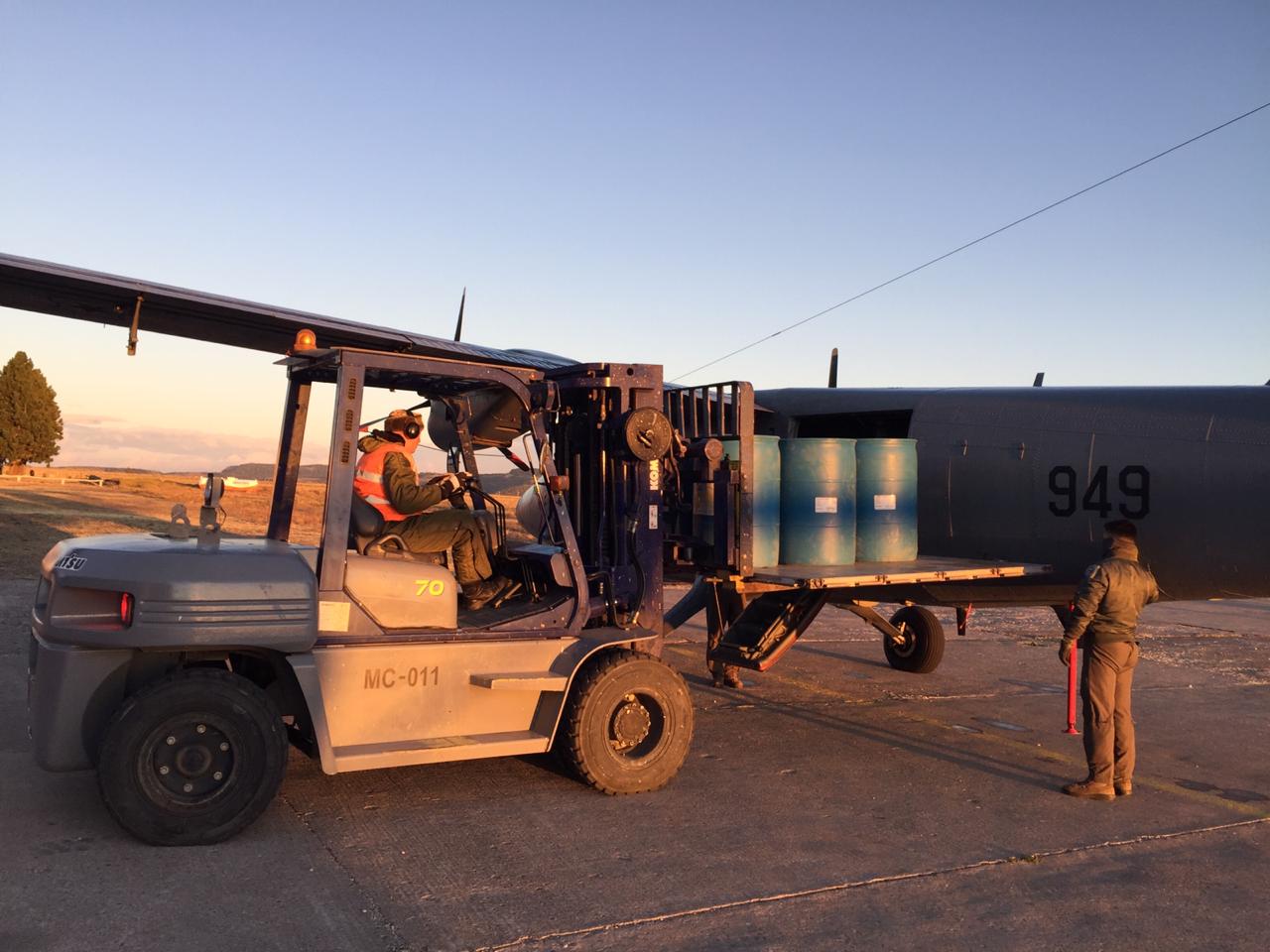 La Institución continúa brindando apoyo en las tareas del combate de incendios que lleva a cabo CONAF en la zona sur del país. Es así como, el domingo 10 de febrero, cuatro aviones DHC-6 Twin Otter del Grupo de Aviación Nº 5, que están operando en la Base Aérea Balmaceda, realizaron el traslado de más de mil litros de material químico retardante de fuego hasta la ciudad de Cochrane en la Región de Aysén.